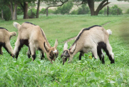 pasture whenever possible. The natural instincts of goats allow them to make use of forage even during winter when the plants are dead, and their browser's diet is substantially benefitted by the variety of forage options. A well rounded and variable diet helps keep health in optimum condition.