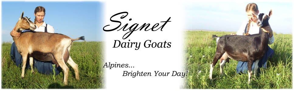 Here at Signet we believe that good conformation, good health and good temperaments are the three things quality goats should have. Our herd is a family first environment with equal emphasis on production, longevity, correctness in conformation, hardiness of health, and workablity in their disposition.