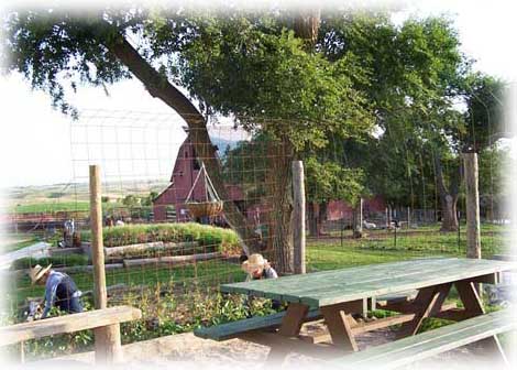 The answer is "Yes!" Herbs and goats go together like sunshine and summertime. And it's not hard to do, most herbs are hardy plants that can be grown along a fence row, or snuck in among the flowerbeds, as at right. The mullien in the middle serves as an accent piece for this small bed, and provides healthful benefits in its large fuzzy leaves and small yellow flowers.