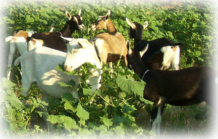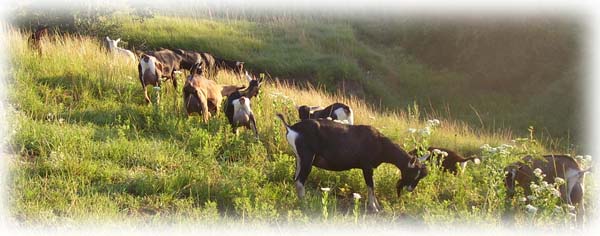 We feel very strongly that the best environment for animals is the one that the Lord designed, and our herd ranges on open pasture whenever possible. The natural instincts of goats allow them to make use of forage even during winter when the plants are dead, and their browser's diet is substantially benefitted by the variety of forage options. A well rounded and variable diet helps keep health in optimum condition.