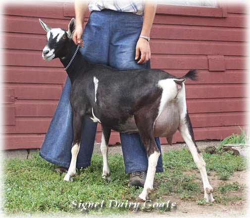 Her honest nature makes her a breeze to handle, and her first kidding resulted in a gorgeous little buck, and the start of a super nice, well attached and rounded udder. We are anticipating great things for this girl as her lactation progresses.